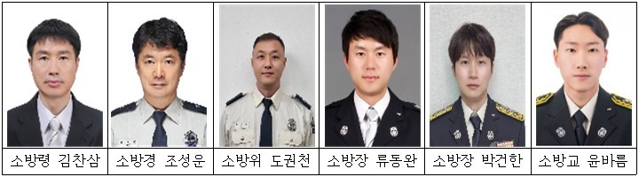 * 소방령 김찬삼, 소방경 조성운, 소방위 도권철, 소방장 류동완, 소방장 박건한, 소방교 윤바름