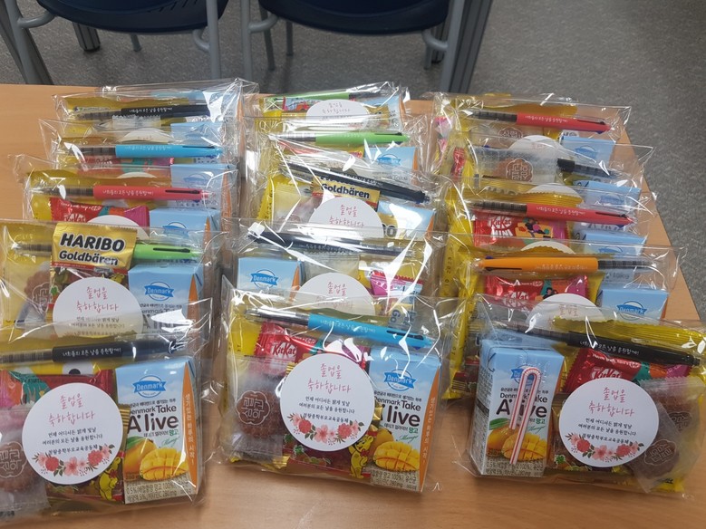 이날 선물을 받은 3학년 학생(이○○)은“졸업이 며칠 남지 않아 여러 가지 생각을 하며 등교하였는데 학부모님이 준비해주신 사랑이 가득 담긴 선물을 받았다. 학부모님들의 응원이 담긴 뜻밖의 선물을 통해 3년 동안의 행복한 추억을 떠올리며 감사함을 깨닫고 미래의 학교에서도 적극적으로 살아가야겠다.”는 소감도 전하였다.