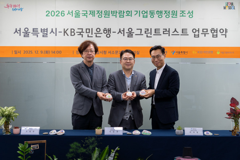 [서울 세계타임즈=이장성 기자] 서울시는 2026년 서울숲에서 개최되는 서울국제정원박람회에 기업동행정원 조성을 위한 업무협약을 KB국민은행과 12월 9일(화) 서울시청에서 체결했다고 밝혔다.