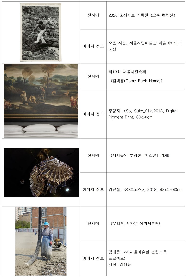 서울시립 사진미술관은 제13회 서울사진축제《컴백홈》(26.4.9.~6.14.)을 개최한다.