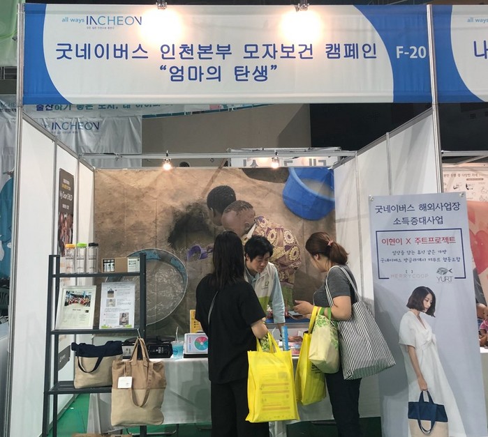 특히 이번 페스티벌에서는 굿네이버스 해외사업장 소득증대사업의 일환인 방글라데시 미푸르 여성 조합에서 만든 주트백을 소개하고 홍보하는 시간도 가졌다. 미푸르 조합은 생계를 유지하고자 모인 14명의 방글라데시 어머니들이 친환경 주트 소재로 가방을 만들어 경제적 활동을 진행하는 지역조합의 하나로 핸드메이드 브랜드 업체인 유르트와 콜라보레이션하여 주트백을 런칭하였다. 페스티벌에 참여한 인천시민들은 방글라데시 주트백을 구경하며 방글라데시 어머니들의 자립 의지를 함께 응원하는 시간을 가졌다.
