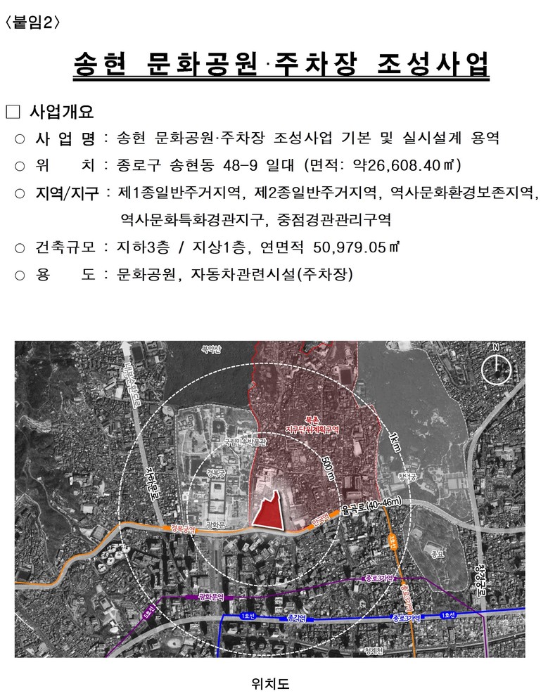 ② 송현 문화공원·주차장: 문화공원 2만6천㎡ 조성, 지하주차장 360면 포함 문화거점 구축