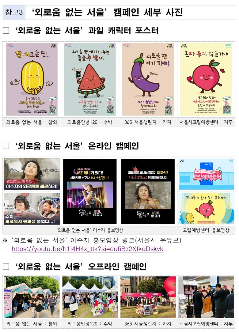 특히 공감 중심의 홍보 방식을 통해 시민과 정서적으로 소통한 점이 주효했다. 대표적으로 ‘외로움 없는 서울’의 앞글자(외·없·서)를 활용한 “방법이 외·없·서?” 슬로건을 통해 외로움은 함께 풀어갈 수 있는 문제라는 긍정적 메시지를 전하며, 시민들에게 위로와 희망을 건네는 효과를 냈다.