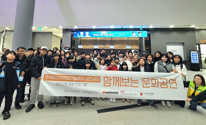 [대덕구 세계타임즈=이채봉 기자] 대전 대덕구(구청장 최충규)는 20일 한국타이어앤테크놀로지 대전공장(공장장 이준길)이 (사)대덕구자원봉사센터(이사장 박재용)와 함께 크리스마스를 맞아 지역아동센터 아동들에게 뮤지컬 공연 관람을 선물했다고 밝혔다.