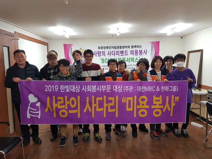 [대전=세계타임즈 이채봉 기자] 대전시 SNS 8천명 봉사단체 사랑의 사다리 밴드(리더 이정제)는 13일 오전10시, 동구 판암동 보문장애인자립생활센터(소장 신인수)에서 미용봉사(단장 송남석)로 우리 사회의 따뜻한 사랑을 전달 하였다.