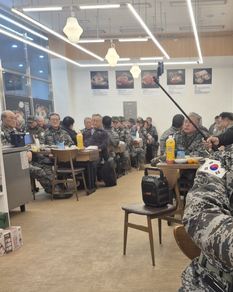 군복을 비롯한 교통비. 식대는 모두 다 자비 부담이다. 이번 동계훈련에 참가한 민주평화통일자문회의 영등포구협의회 자문위원인 안호원 한국열린사이버대학교 특임교수(78)는 공군 출신답게 “조국이 부르면 가슴 속 끓는 붉은 피를 저 푸른 하늘에 뿌리며 산화하겠다.”며 결전(決戰)의 강한 의지를 보였다.