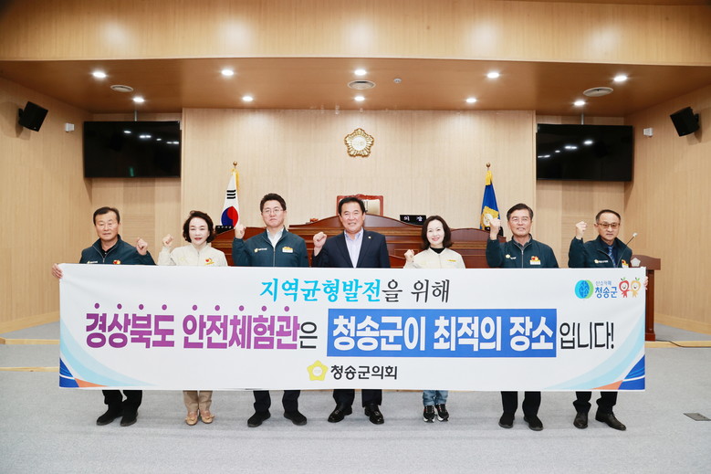 현재 청송군에서는 경상북도 안전체험관 유치추진위원회가 발족되고 여러 단체에서 현수막게시와 서명운동이 이어지는 등 경상북도 안전체험관 유치 열기가 고조되고 있고, 군의회 역시 회기 중이 아님에도 안전체험관 유치에 대한 군민들의 열망에 응답하기 위해 이날 군의회에 모였다.