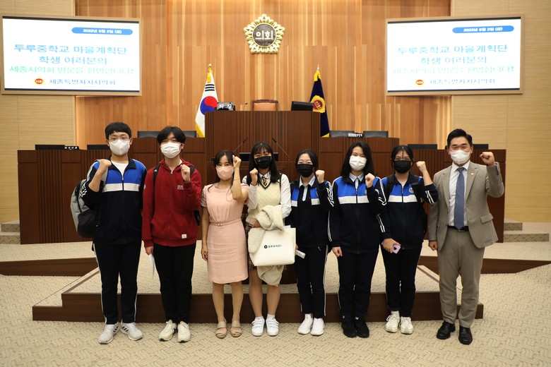 이날 면담에 참석한 두루중 마을계획단 학생들은 청소년 관점에서 마을에 필요한 과제를 발굴하고 기발한 발상을 담은 정책 제안으로 주목을 받아왔다.