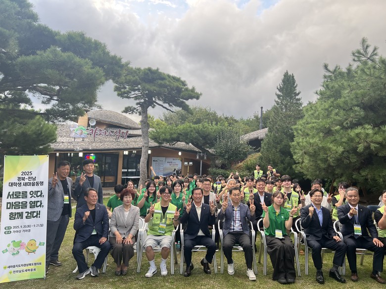 - 새마을운동 종주도 경북의 위상 제고 및 차세대 지도자 육성 도모 - [세계타임즈=경북 한윤석 기자] 경상북도는 20일부터 21일까지 1박2일 일정으로 성주군 가천면에 있는 가야경에서 ‘2025 경북-전남 대학생 새마을동행’ 행사를 개최했다.