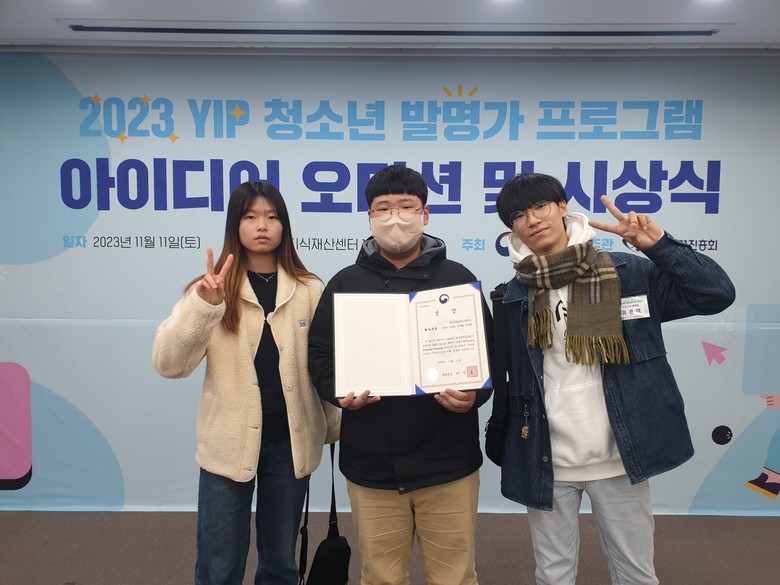 [광주 세계타임즈=손권일 기자] 광주자연과학고등학교 학생들이 지난 11일 ‘2023 청소년 발명가 프로그램(YIP)’ 아이디어 공개 오디션에서 최우수상을 수상했다.