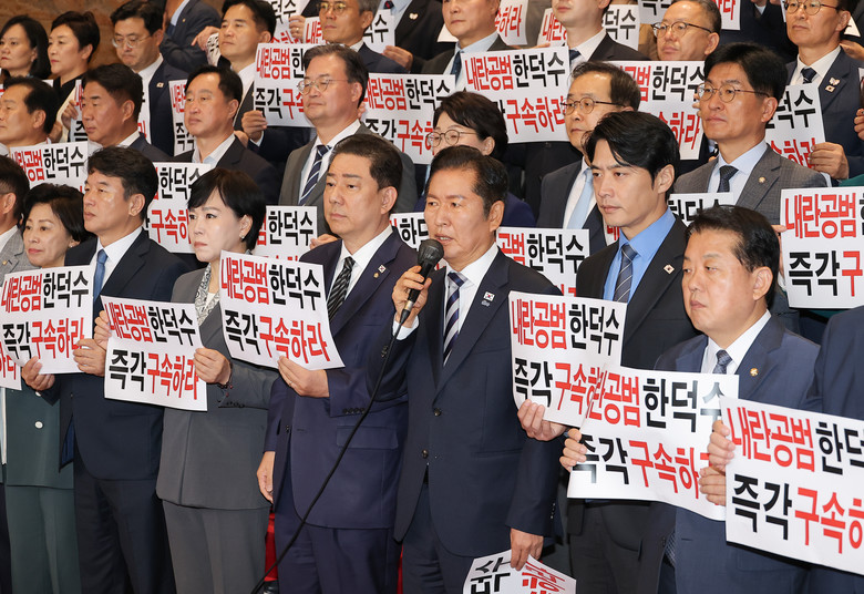 [세계타임즈 = 심귀영 기자] 더불어민주당은 14일 한덕수 전 국무총리의 재판에서 12·3 비상계엄 당일 대통령실 폐쇄회로(CC)TV가 공개되자 "내란 공모 정황이 드러났다"고 주장하면서 사법부에 한 전 총리에 대한 처벌을 압박했다.민주당은 국정감사 이틀째인 이날 국회 본청 로텐더홀 계단에서 100여명의 의원이 참석한 가운데 '내란공모 규탄 기자회견'을 진행했다.