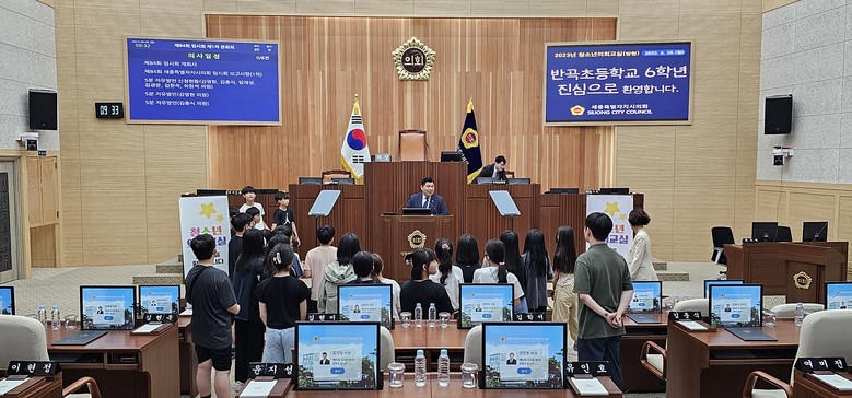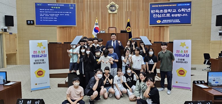 [세종 세계타임즈=이채봉 기자] 세종특별자치시의회(의장 이순열)는 28일 반곡초등학교 학생을 대상으로 청소년 의회교실 본회의 방청 프로그램을 운영했다.