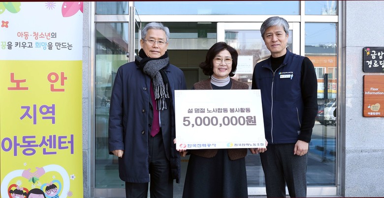 [세계타임즈 = 이영진 기자] 한국전력공사(대표이사 사장 김동철, 이하 한전)는 설 명절을 맞아 김동철 사장과 최철호 전국전력노조위원장이 1월 21일(화) 전라남도 나주 소재 ‘행복의 집’과 ‘노안지역아동센터’를 방문하여 따뜻한 명절을 보낼 수 있도록 온누리상품권을 전달하고 이웃사랑을 실천하였다고 밝혔다.