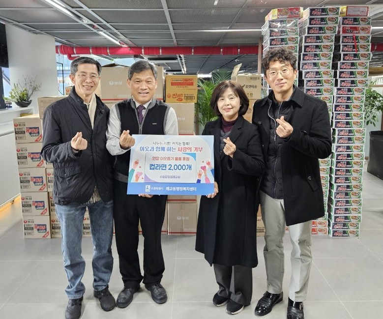 [수원시 세계타임즈=송민수 기자] 지난 30일, 수원중앙침례교회(담임목사 고명진)는 연말을 맞아 관내 복지사각지대에 있는 어려운 이웃들이 따뜻한 겨울을 보낼 수 있도록 컵라면 2,000개를 수원시 팔달구 매교동(동장 이지효)에 후원했다.