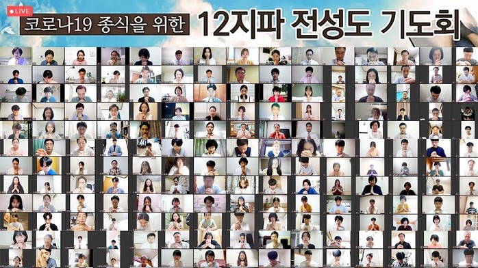| ▲2020년 9월 2일 신천지예수교회 성도들이 수요예배 시간에 코로나19 종식을 위한 온라인 기도회를 하고 있다. |