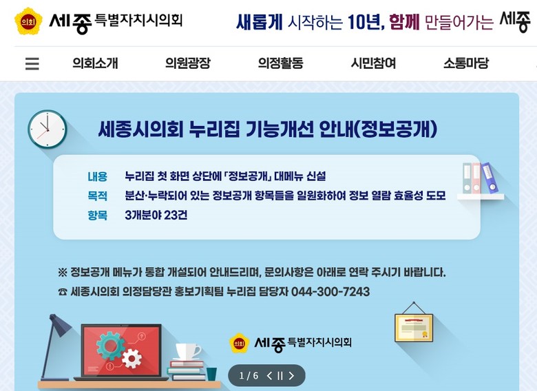 - 투명한 정보공개로 ‘의회 청렴도 향상’에 긍정적 파급효과 기대 [세종 세계타임즈=이채봉 기자] 세종특별자치시의회(의장 임채성)는 24일 시민과 소통하는 열린 의회상을 구현하기 위해 누리집의 정보공개 항목 통합 정비를 완료했다고 밝혔다.