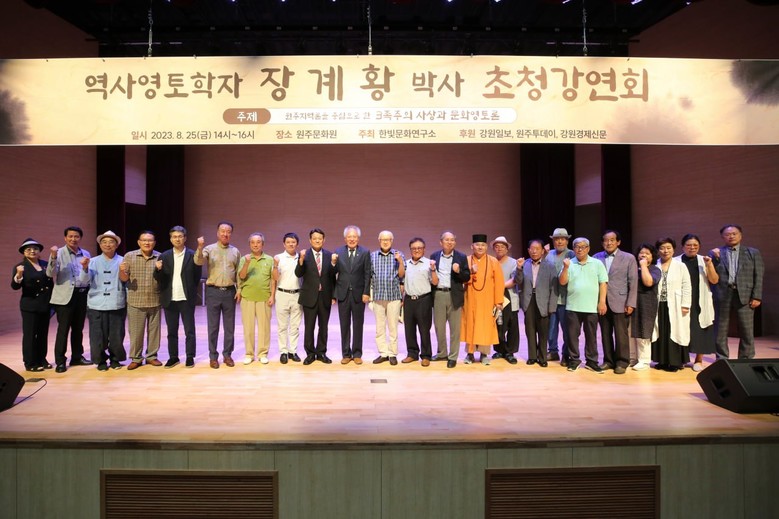 [세계타임즈 백진욱 기자] 한빛문화연구소가 개최한 저명한 ‘역사영토학자 장계황 박사 초청 강연회’가 지난 8월 25일 ‘원주지역론을 중심으로 한 - 3족주의 사상과 문화영토론’이란 주제로 원주문화원 1층 문화공연장에서 성황리에 개최됐다.