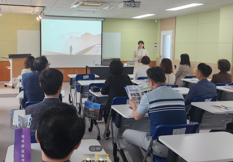 [파주시 세계타임즈=송민수 기자] 파주광일중학교(교장 권미주)가 지난 6월 5일(수) 수업 공개의 날을 열어 IB 교육 실천 과정을 공유하고 소통하는 자리를 마련하였다. 이번 수업 공개의 날에는 경기도파주교육지원청 內 50여명의 교원들이 참관하여 IB 수업에 대한 높은 관심을 보였다.