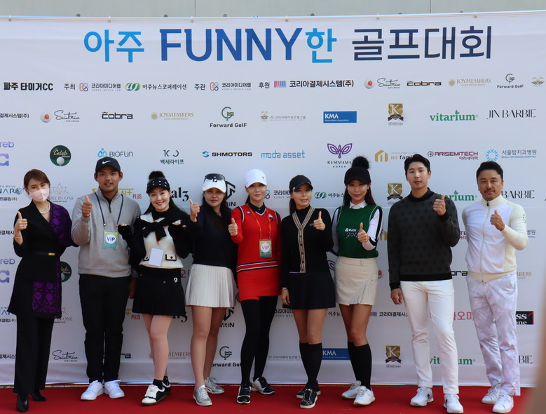 가을 햇살이 좋은 10월 29일 파주 타이거CC에서 '아주 FUNNY한 골프 대회'가 열렸다. 대회 참가자 및 관계자들이 기념 사진을 촬영하고 있는 모습.