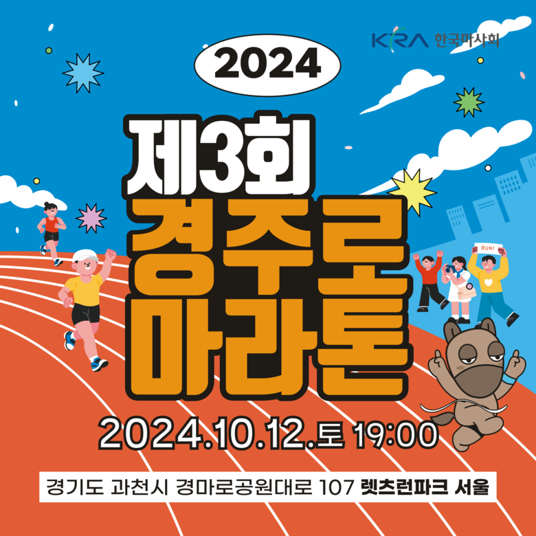 [세계타임즈 = 송민수 기자] 한국마사회(회장 정기환)는 10월 12일, 렛츠런파크 서울에서 천고마비 계절을 맞아 경마장에서 경험 수 있는 특별한 이벤트인 ‘제3회 경주로마라톤’을 개최한다고 밝혔다.