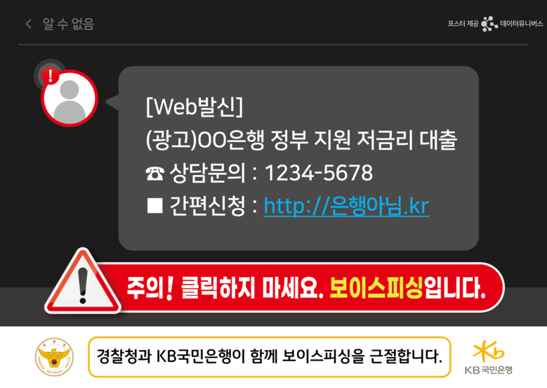 또한 KB국민은행은 경찰청 주관 ‘보이스피싱 특별자수·신고기간’에도 적극 참여한다. 오는 10월 11일까지 진행되는 신고기간 동안 영업점 내에 관련 포스터 및 고객 안내장을 배치할 예정이다. 이에 더해 영업점 내 대고객 보이스피싱 예방 안내방송 빈도 수를 증가시키는 등 고객에게 경각심을 고취시킬 예정이다.