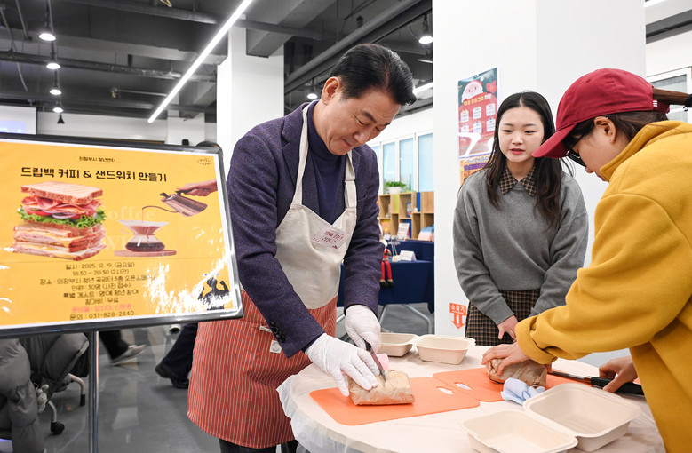 또한, ‘커피 드립백&샌드위치 만들기’ 체험 프로그램에 김동근 시장이 명예청년으로 참여해 청년들과 소통하는 시간을 가졌다.