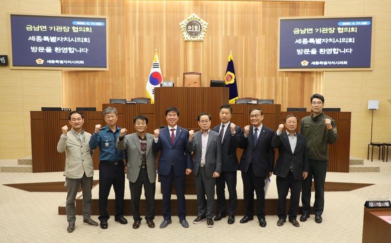 [세종 세계타임즈=이채봉 기자] 세종특별자치시 금남면을 지역구로 두고 있는 김동빈 의원은 17일 세종시의회 회의실에서 금남면 주요 기관장들이 참여한 가운데 “2023년 4월 금남면 기관장 협의회”를 개최했다고 밝혔다.