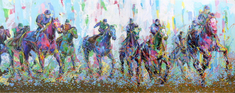 작가의 화폭을 가득 채우고 있는 것은 말과 경마의 세계다. 힘차고 리드미컬한 붓과 나이프의 터치, 경쾌하고 화려한 때로는 무게감이 느껴지는 장엄한 색감은 보는 이의 마음을 뛰게 한다.