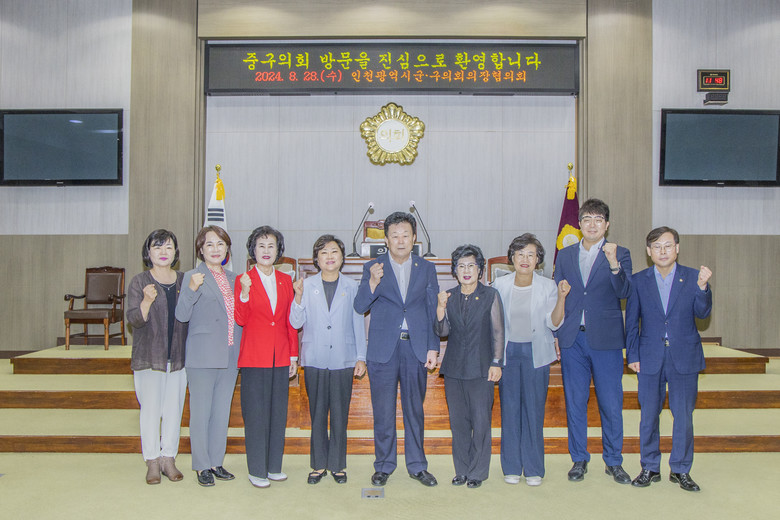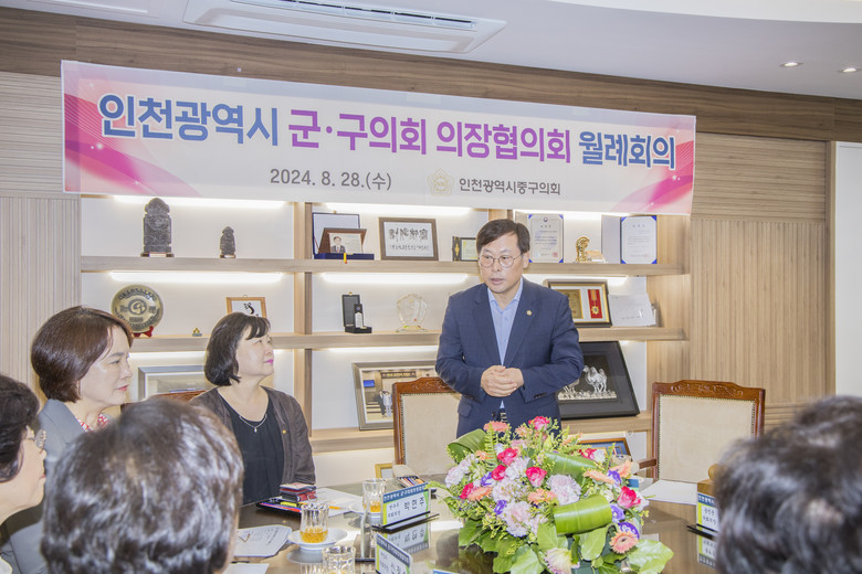 인천 10개 군·구의회의 9대 후반기 의장 선출이 모두 완료된 이후, 중구의회에서는 처음으로 개최한 월례회인 만큼 김정헌 중구청장이 직접 참석하여 의장들과 인사를 나누었으며 중구의회 이종호 의장의 환영사와 이의명 협의회장의 협의회 진행으로 회의가 이어졌다.