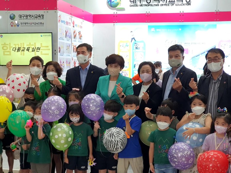 교육위원회 위원들은 강은희 교육감을 비롯한 대구교육청 관계자들과 함께 부스를 참관하며 ‘배움 가득놀이 교육과정 운영’, ‘행복안심 교육환경 조성’, ‘함께하는 다품교육 실현’ 등의 다양한 대구유아교육정책 전시영역 부스와 체험영역 부스를 돌며 대구 유아교육의 현주소를 확인하는 시간을 가졌다.