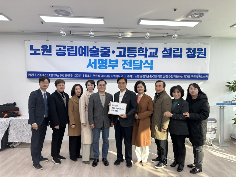이와 관련해 우원식 의원은 “서울은 대한민국 수도로써 엄청난 교육열을 자랑하고 있으나 공립예술중·등학교는 한 곳도 없다”라며 “노원 공립예술중‧고등학교 설립 추진위원회 상임대표로서 오늘 전달한 청원 내용을 바탕으로 학교 설립에 최선을 다하겠다”라고 밝혔다.