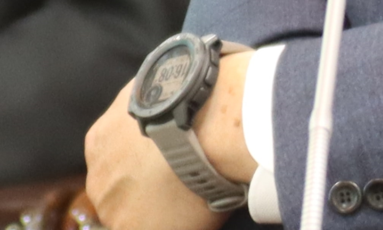 양이원영 의원이 공개한 사진 속의 손목시계는 해외 유명 브랜드인 G사에서 생산되는 GPS 스마트워치로 태양광을 활용해 전력을 공급받는 시계로 유명하다.