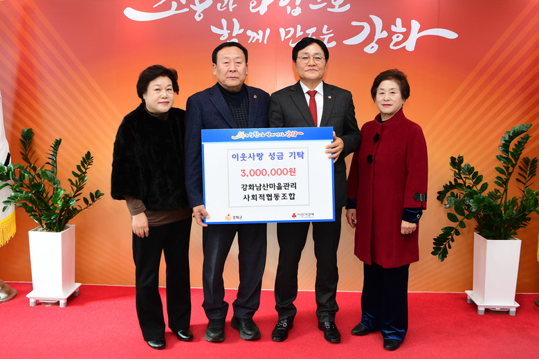 [강화군 세계타임즈=심하린 기자] 강화군(군수 박용철)은 강화남산마을관리 사회적협동조합(대표이사 김상배)이 지난 8일 사회복지공동모금회를 통해 300만 원의 성금을 강화군에 기탁했다고 밝혔다.