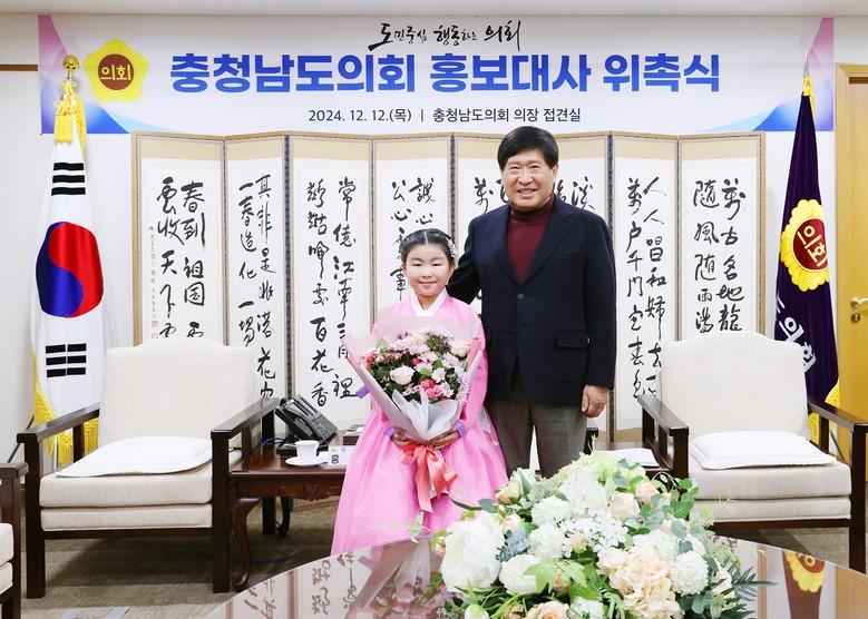 [충남 세계타임즈=이현진 기자] 충남도의회(의장 홍성현)는 의정활동 홍보 강화를 위해 충남을 대표하는 국악 영재 이로하 학생을 도의회 홍보대사로 위촉했다.