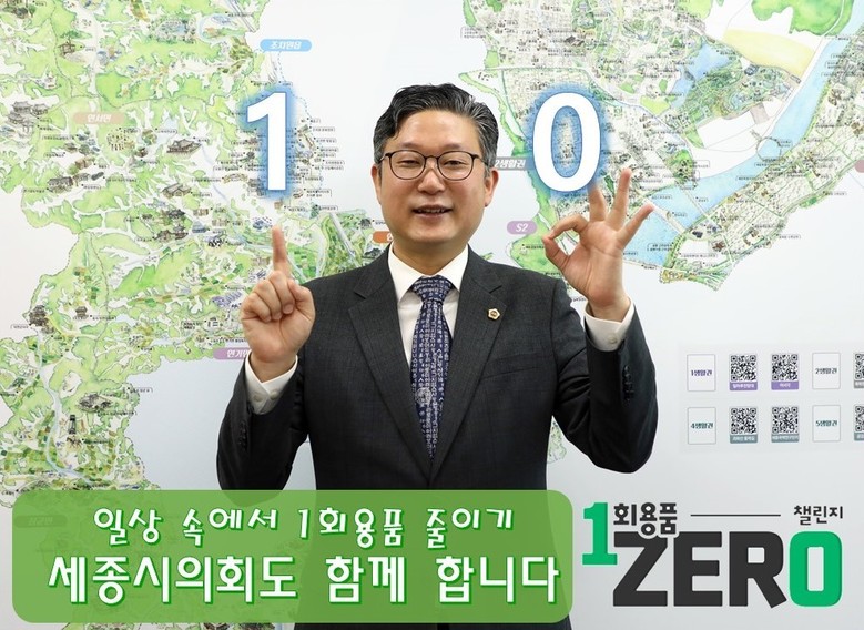 [세종 세계타임즈=이채봉 기자] 세종특별자치시의회 안신일 예산결산특별위원장이 지난 19일 1회용품 사용줄이기 실천을 위하여 ‘1회용품 제로 챌린지’에 참여하였다.