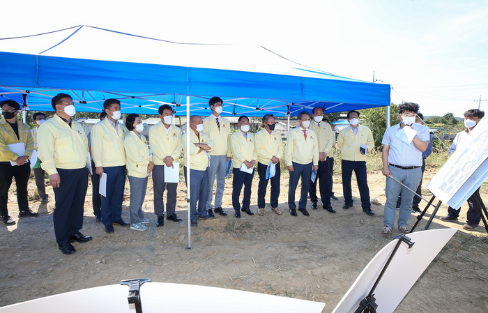현장에서 추진상황을 보고받은 건설소방위원회 위원들은 실시계획인가 후 토지 수용 단계에서 사업이 지연되지 않도록 하고 ‘26년 신청사 준공에 차질이 없도록 사업추진에 만전을 기해달라고 당부했다.