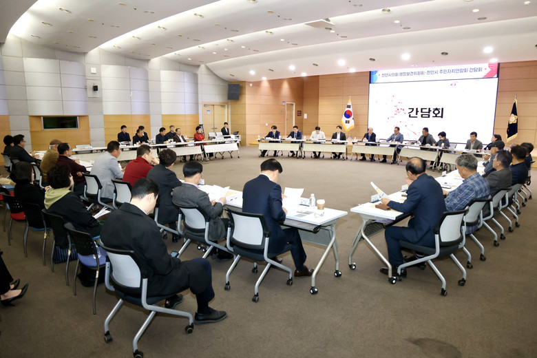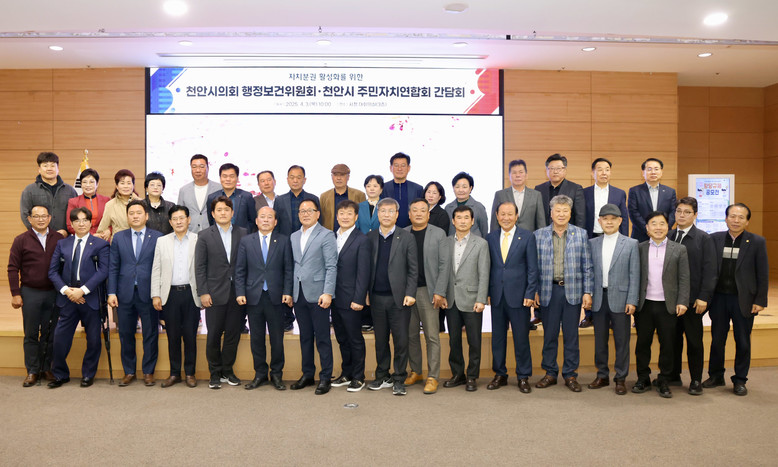 [천안시 세계타임즈=이현진 기자] 2025년 4월 3일, 천안시의회 행정보건위원회(위원장 육종영)가 천안시 주민자치연합회(연합회장 박정규)와 간담회를 가졌다.