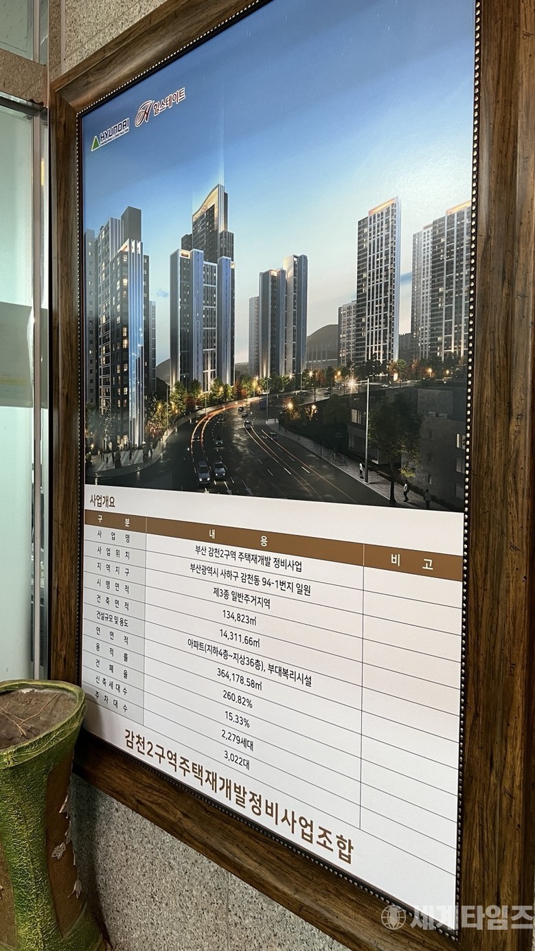 강 조합장은 "조합원 설문조사 결과 '주차장 대수가 많았으면 좋겠다'해서 1.75대, 엘리베이터도 호당 1대, 층간 높이도 2.45m 등으로 이번 건축심의에 반영해 적용시켰다"고 설명하고 "감천항 뷰와 송도항 뷰를 갖고 있어 사하구의 랜드마크가 될 수 있는 아파트가 되지 않을까 기대하고 있다. 현대건설과 협상을 계속하고 있다"고 말했다.