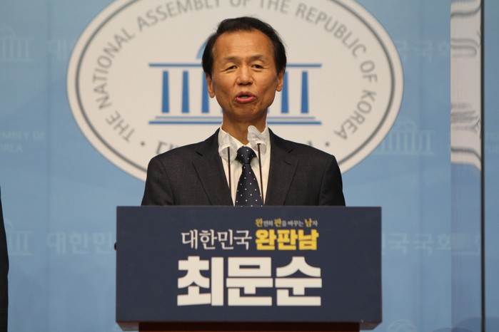 [세계타임즈 이판석 기자]최문순 강원도지사는 ‘대한민국을 완전히 판을 바꿀 남자, 대한민국 완판남’슬로건으로 3일 오후 서울 여의도 국회 소통관에서 대선 출마 선언 기자회견을 열고 "우리 당의 스탠스가 더 진보색으로 가야 한다. 분배와 (고용을 통한)임금 강화에 중점을 두는 정책으로 가야 한다"고 주장했다.