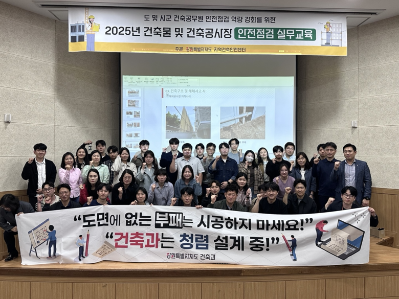 [강원도 세계타임즈=김민석 기자] 강원특별자치도는 4월 30일(수), 원주시 행구로에 위치한 기후변화대응교육연구센터 대강당에서 「2025년 건축물 및 건축공사장 안전점검 실무교육」을 실시했다고 밝혔다.