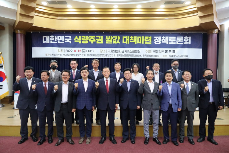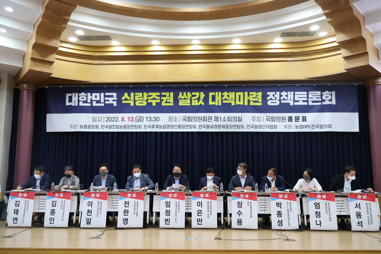 국회 농림축산해양수산위원 소속 홍문표의원 주최로 12일 국회의원회관 제1소회의실에서 「대한민국 식량주권 쌀값 대책마련을 위한 정책토론회」가 개최됐다.
