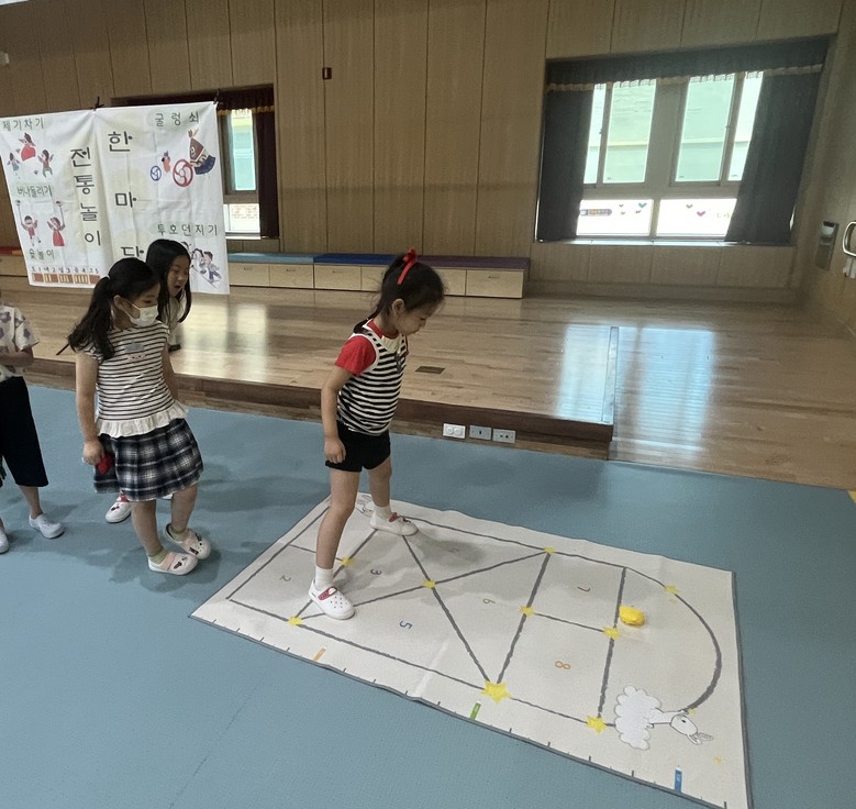 전통 놀이 체험은 ‘투호 놀이, 윷 던지기, 제기차기, 굴렁쇠 굴리기, 양궁 놀이’등이 진행되었다. 이와 더불어 우리나라의 전통 의복인 한복의 변천사와 ‘공수 자세’, ‘웃어른께 큰절 하는 법’을 배워보는 예절교육도 함께 진행되었다. 특히 이번 체험교육 중 우리 전통음식 ‘인절미 만들기’를 위한 떡 메치기 활동은 유아들의 가장 큰 흥미를 이끌었다. 더욱이 체험과정에서 유아들이 직접 만든 인절미가 가정으로 보내져 함께 나누어 먹음으로써 한가위의 풍성함을 더해주었다.