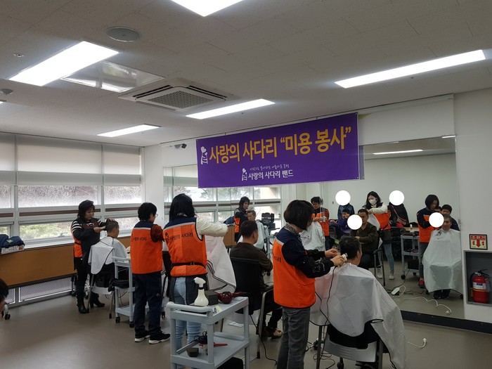 [세계타임즈 이장성 기자] 다양한 봉사를 꾸준히 하고 있는 대전시 SNS 봉사단체 사다리 밴드(리더 이정제)는 25일 오전10시,대덕구 동구 구도동에 위치한 아름다운복지관(관장 최재천)에서 30명의 장애인들에게 미용봉사로 우리 사회의 따뜻한 사랑을 실천하였다.