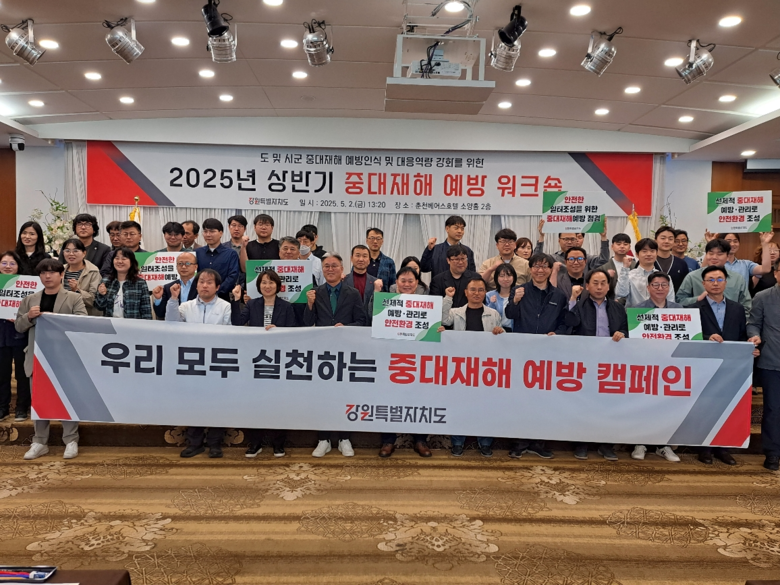 [강원도 세계타임즈=김민석 기자] 강원특별자치도(도지사 김진태)는 5월 2일(금) 오후 1시 20분, 춘천 베어스호텔에서 「2025년 상반기 도·시군 중대재해 예방 워크숍」을 개최했다고 밝혔다.