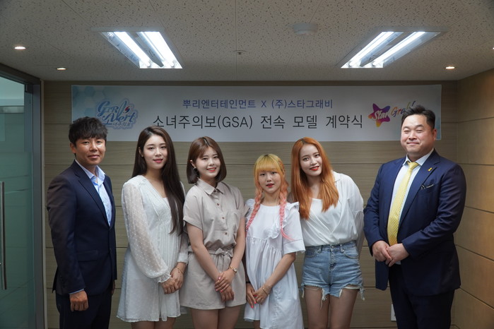 [세계타임즈 김인수기자] 7월5일 tvN D ‘통통한 연애2’로 시청자의 관심을 다시 모으고 있는 샛별과 구슬이 속한 소녀주의(GSA)가 ㈜스타그래비의 식품과 화장품 브랜드 전속 모델로 발탁돼 계약을 체결했다.