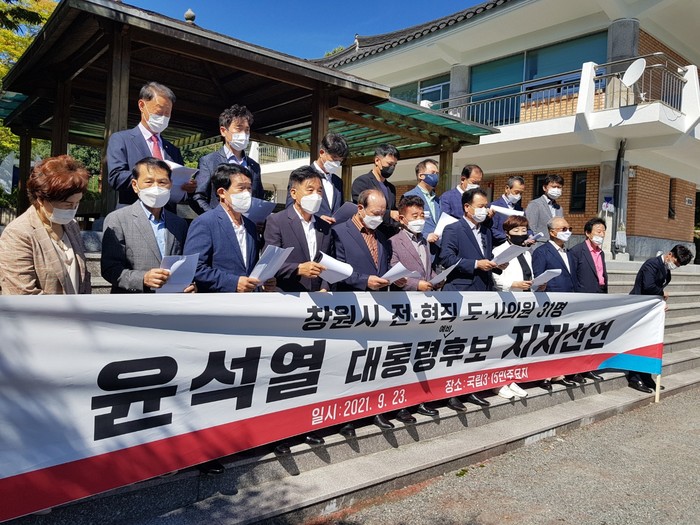 박삼동 도의원과 손태화 창원시의원을 비롯한 전·현직 도·시의원들은 23일 오전 10시 30분, 국립3·15민주묘지 충혼탑 앞에서 기자회견을 갖고 윤 후보 지지선언을 공개적으로 밝혔다.