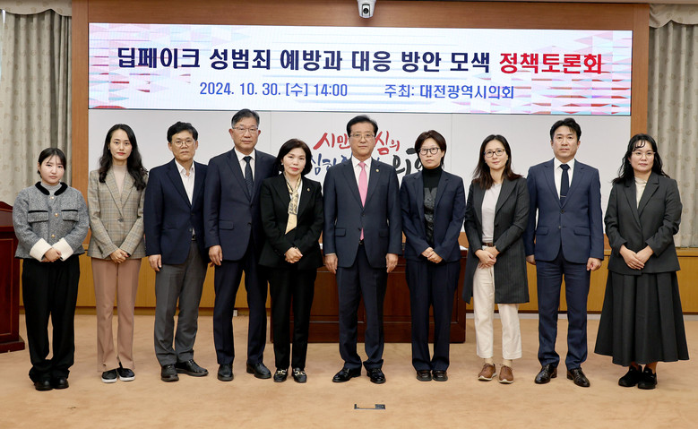 [대전 세계타임즈=이채봉 기자] 대전시의회는 30일 시의회 소통실에서 조원휘 의장(국민의힘, 유성구 3)주재로 ‘딥페이크 성범죄 예방과 대응 방안 모색 정책토론회'를 개최했다.