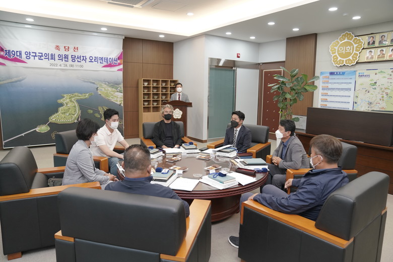 [세계타임즈=양구군 김민석 기자] 6.28(화) 11시에 양구군의회 의장실에서 제9대 양구군의회 의원당선자 오리엔테이션을 가졌다.