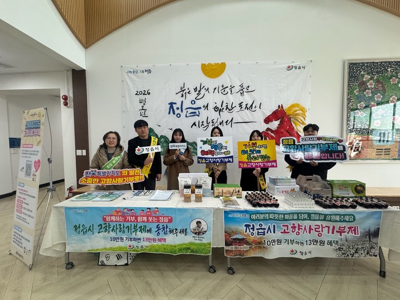 한편, 고향사랑기부제 참여는 ‘고향사랑e음’ 홈페이지나 주요 은행 앱, 전국 농협 창구 어디서나 가능하다. 연간 2000만원까지 기부할 수 있으며, 모인 기부금은 사회적 취약계층 지원과 청소년 육성, 문화 예술 증진 등 정읍 시민의 복리 증진을 위해 쓰인다.