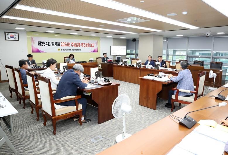 [충남 세계타임즈=백택기 기자] 충남도의회 농수산해양위원회(위원장 이연희)는 19일 제354회 임시회 2차 회의를 열고 2024년 해양수산국, 수산자원연구소, 농업기술원, 남부출장소에 대한 주요업무 추진상황을 보고 받았다.